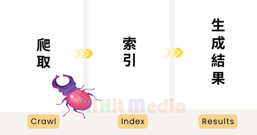 Google的檢索工具,就是行銷人口口聲聲說的「爬蟲」。爬蟲會前往有被成功收錄的網頁抓內容,這就是第一步:找書